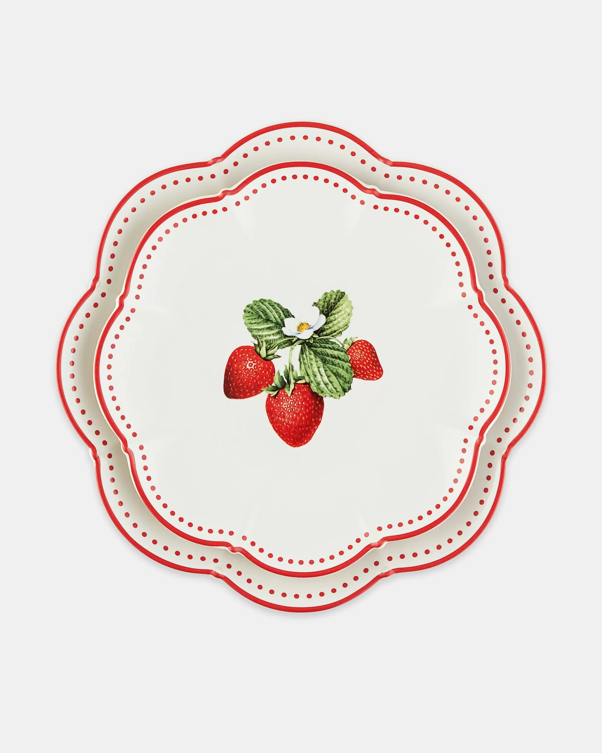 Serve your most delicious desserts in this inviting Tutti Frutti plate, crafted from fine white porcelain with touches of red and a sweet strawberry motif at the centre. The illustrations are inspired by the atmosphere and luscious fruit of the island of Capri. Ideal to pair with the dinnerware and linens from this range.