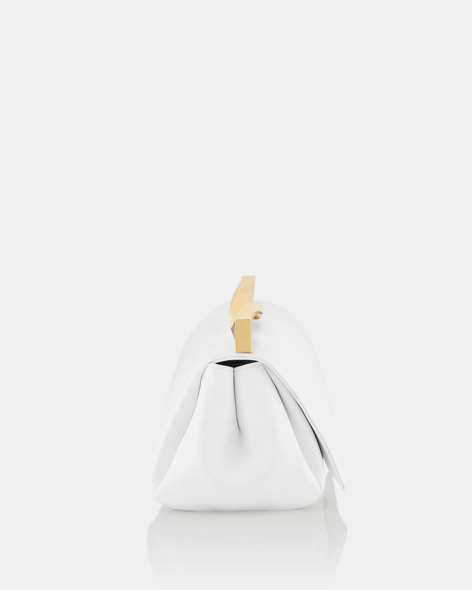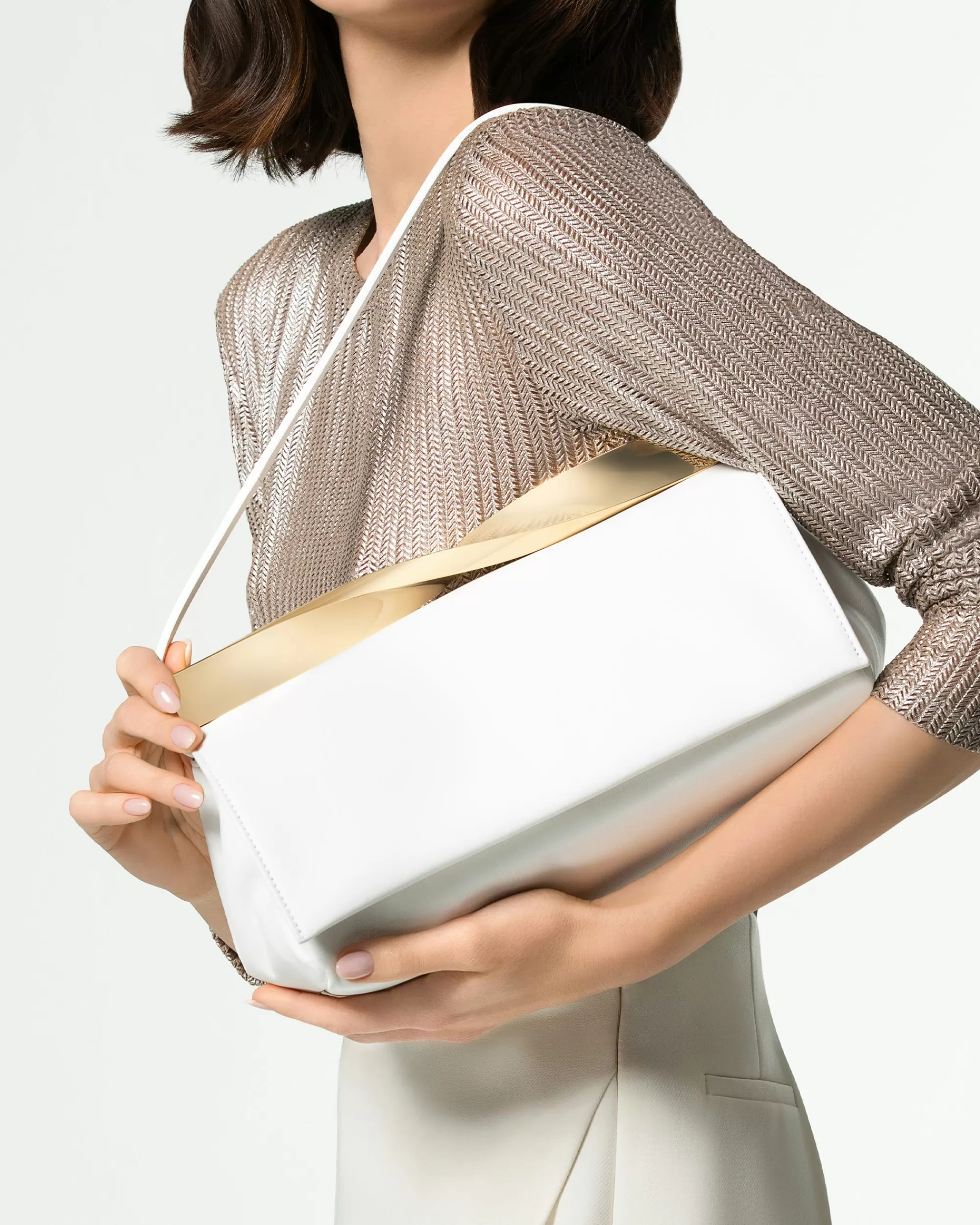 Luxurious fabrication makes the essential profile of the Twist Clutch the epitome of daily elegance. Named after the twisted design of the sculptural metal clasp – and a matching heel of the collection – this handbag is crafted from nappa that’s soft and supple. The combination of off-white leather and gold-tone hardware makes this stand-out design a fresh addition to your daily edit.