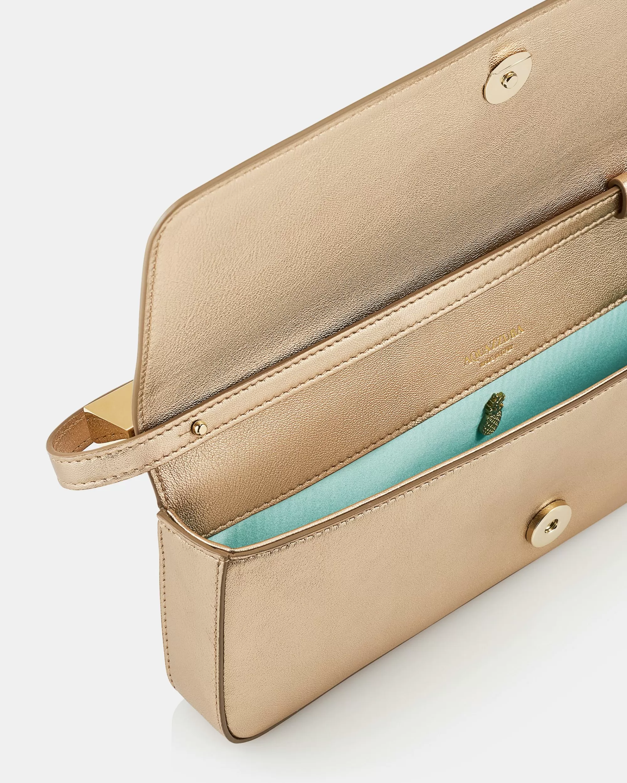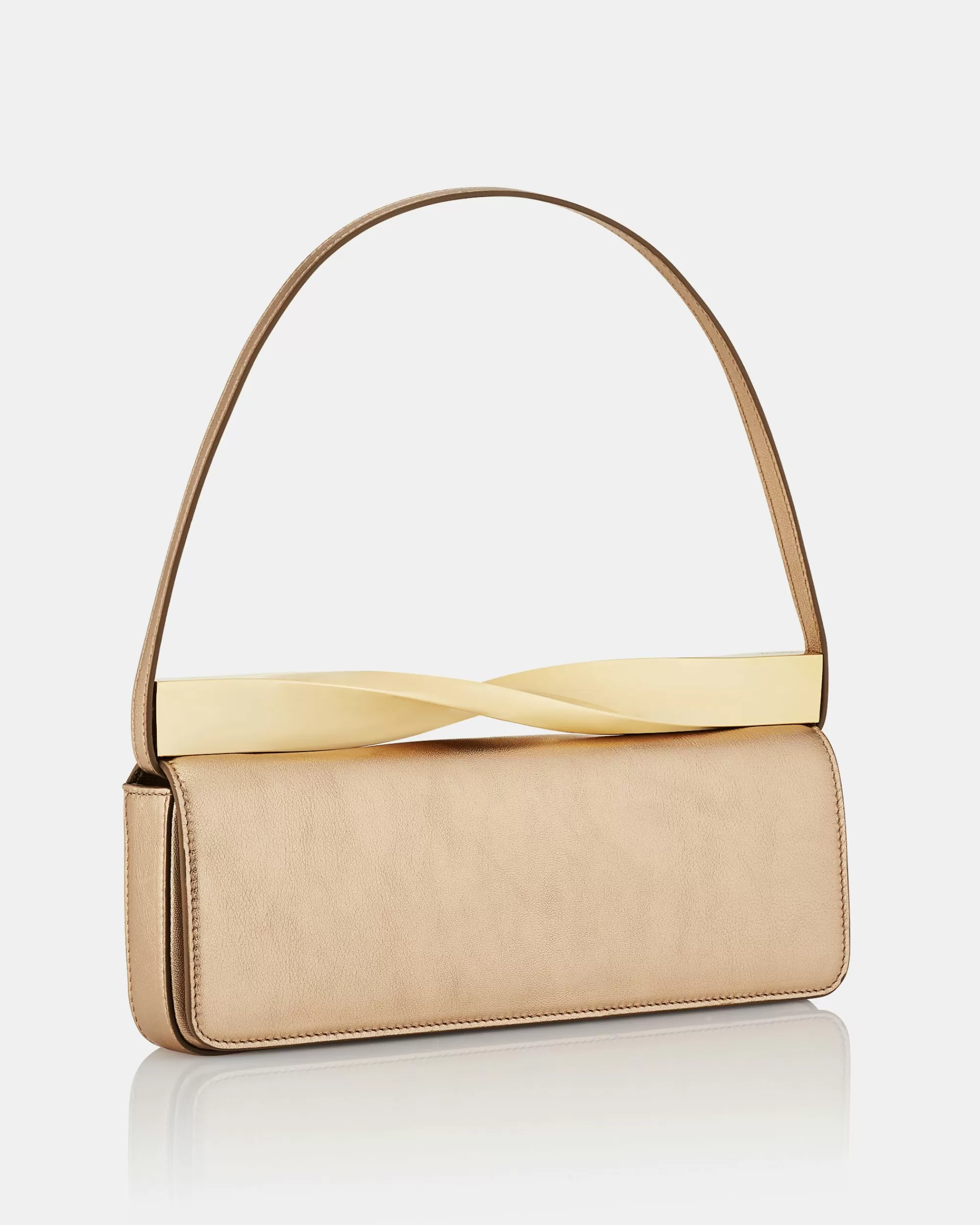 An unmistakably modern addition to everyday looks: our Twist Shoulder bag won’t go unnoticed thanks to the sculptural metal clasp – instantly recognisable and classic. Meticulously made from metallic light-copper leather and accented with light gold-tone hardware, the essential silhouette is equipped with a shorter strap that nods to 90s trends.