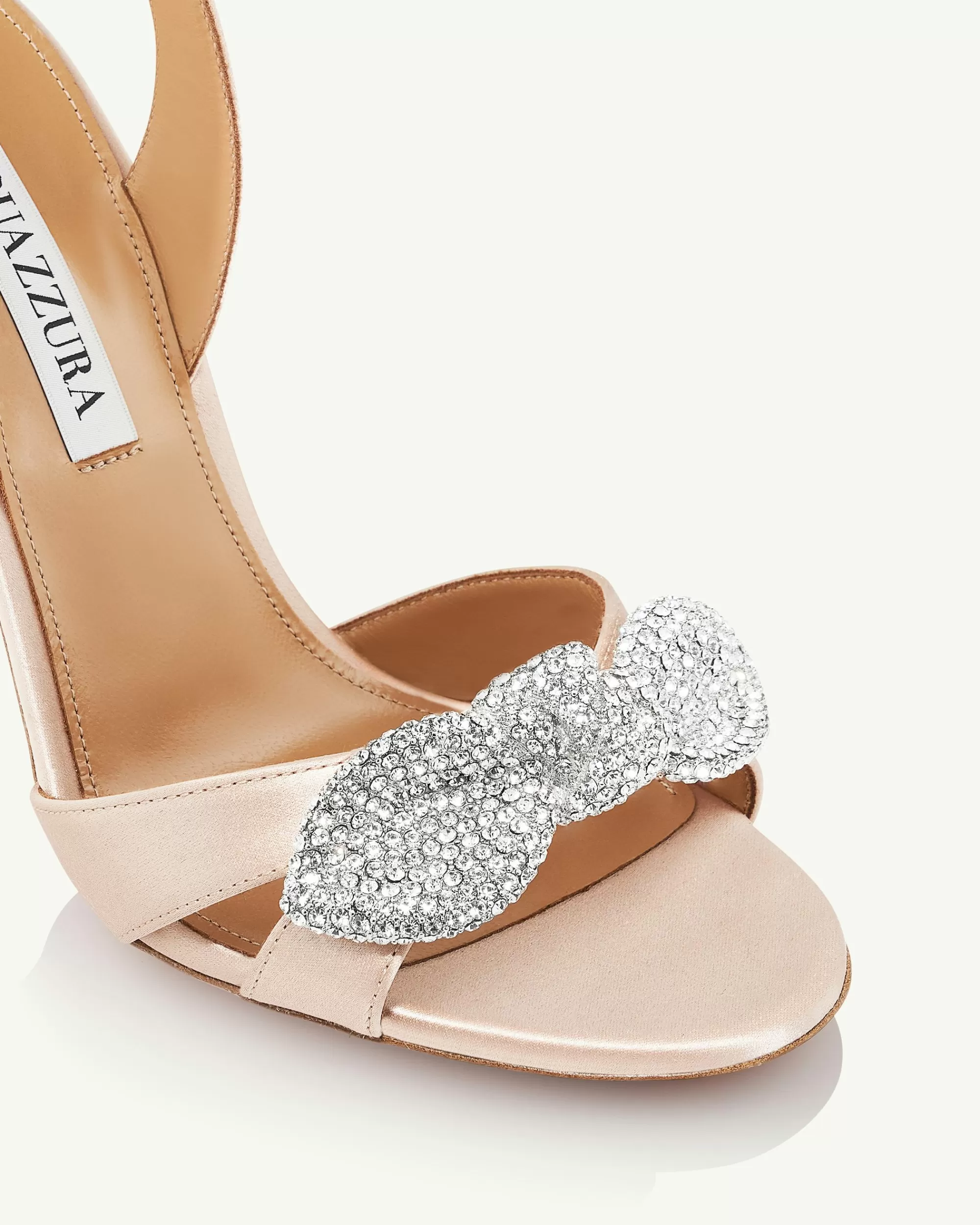These Very Bow Tie Crystal Sandals are a glamorous choice for a night out. Theyre crafted from luminous Powder Pink satin and topped with crystal-embellished bows – Aquazzuras signature adornment. Poised on 105 mm heels, theyre a fabulous choice no matter the dress code.